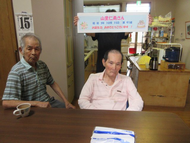 山里仁勇さん、本日満91歳の誕生日を迎えられました。 メンバーで誕生日を祝いました。 主は、メンバーが歌うバースディソングに手拍子を取り嬉しそうでした。 (令和元年10月15日 GH1号館/石川貴美子発信)