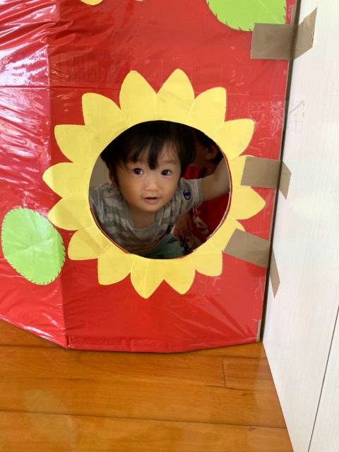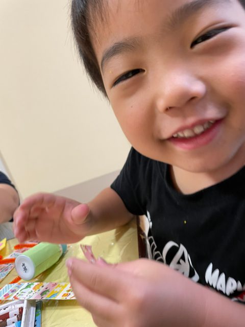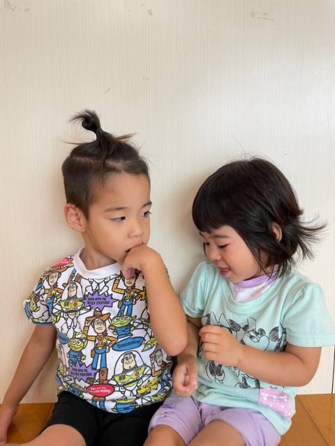 昼食(パン・煮込みハンバーグ・温野菜サラダ・コーンチャウダー・フルーツ)