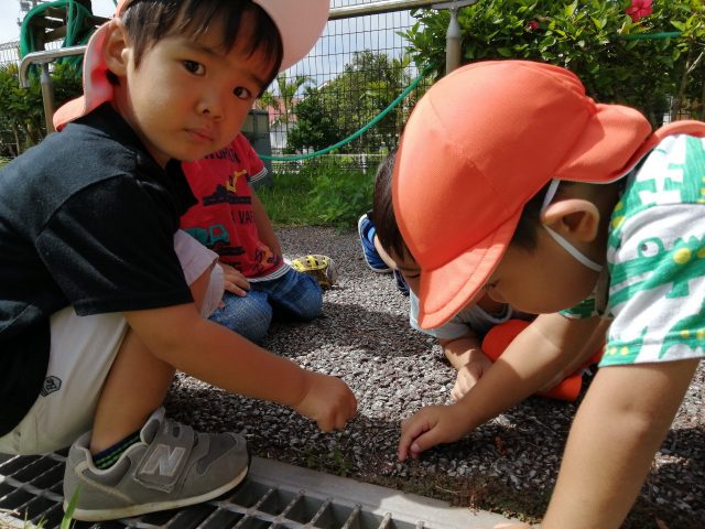 7月6日保育園の様子(クワガタ持参興味津々❣園内・園外・給食(^^♪