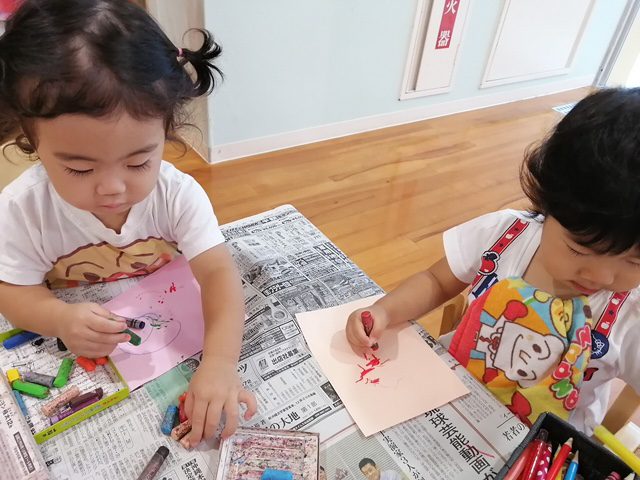 8月5日保育園の様子❣(園内・制作(お絵かき)♪アクロポリスホール運動(^^♪昼食°˖✧◝(⁰▿⁰)◜✧˖°