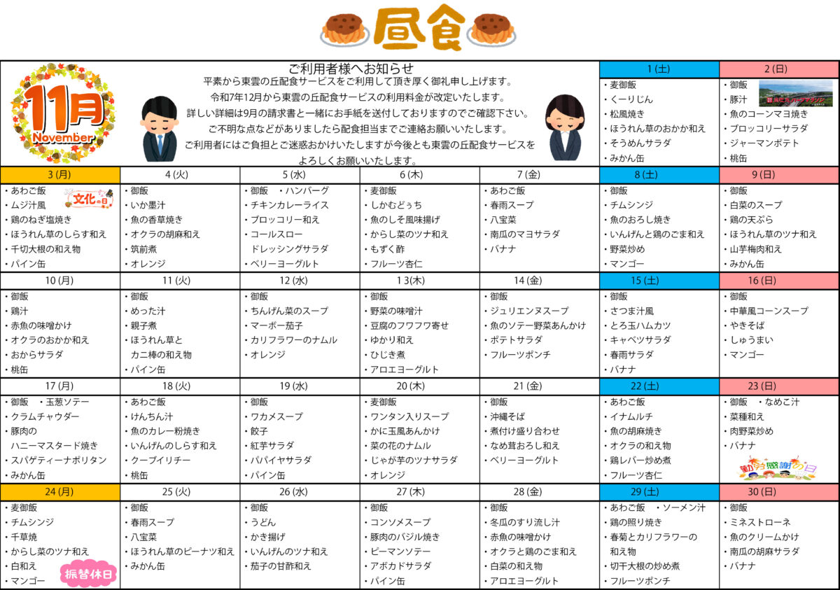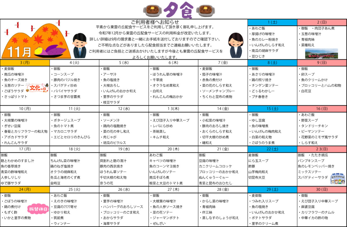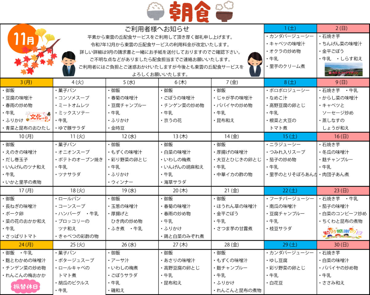 ※諸事情により一部メニューの変更がある場合があります。ご了承ください。