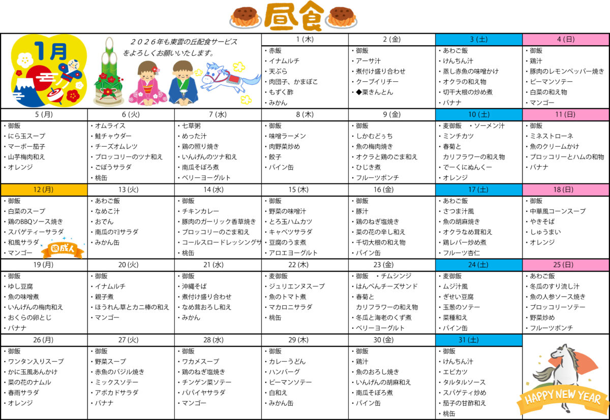 本年も東雲の丘配食サービスをご利用いただき誠にありがとうございました。